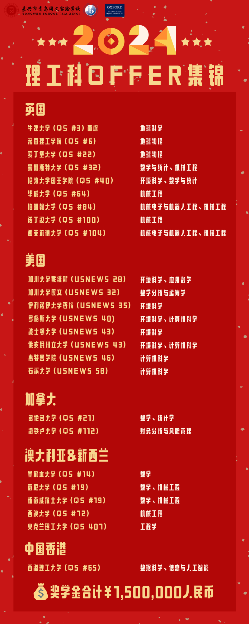 在剛剛過去的申請(qǐng)季,2024屆畢業(yè)生們?cè)诶砉た祁I(lǐng)域展現(xiàn)出了多元化的興趣,并且獲得了多所世界名校的錄取以及豐厚的獎(jiǎng)學(xué)金。